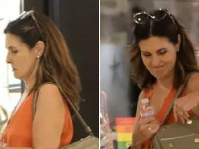 Vestindo um look super casual, composto por uma blusa soltinha em um tom laranja, calça branca e uma sandália nude, Fátima percorreu pelo shopping de forma concentrada, olhando as vitrines e segurando algumas sacolas.