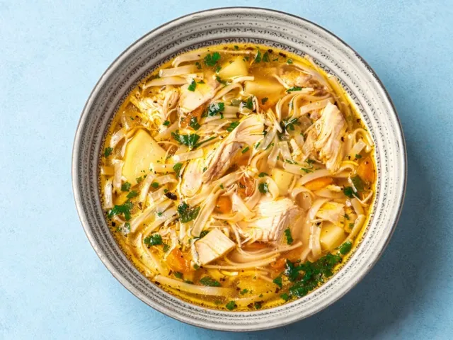 Sopa de macarrão com frango e legumes