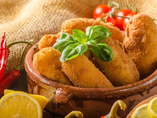 Croquete de frango com purê de batata-doce