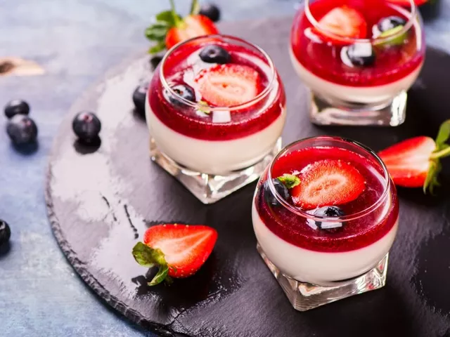 Pudim de coco com frutas vermelhas