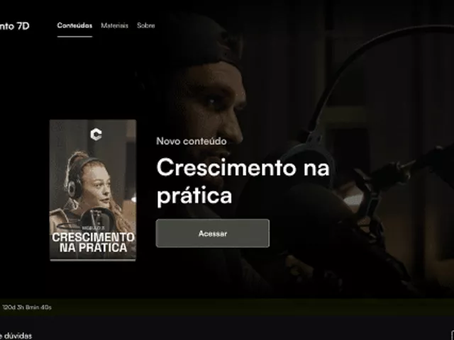 O link da área de membros leva, então, à experiência da comunidade, mostrando como os conteúdos serão apresentados, com a apresentação dos eventos programados e navegação pelos módulos, tal qual o aluno vai conferir. A Hubla explica como personalizar a área de membros, que é acessada pelo menu lateral: